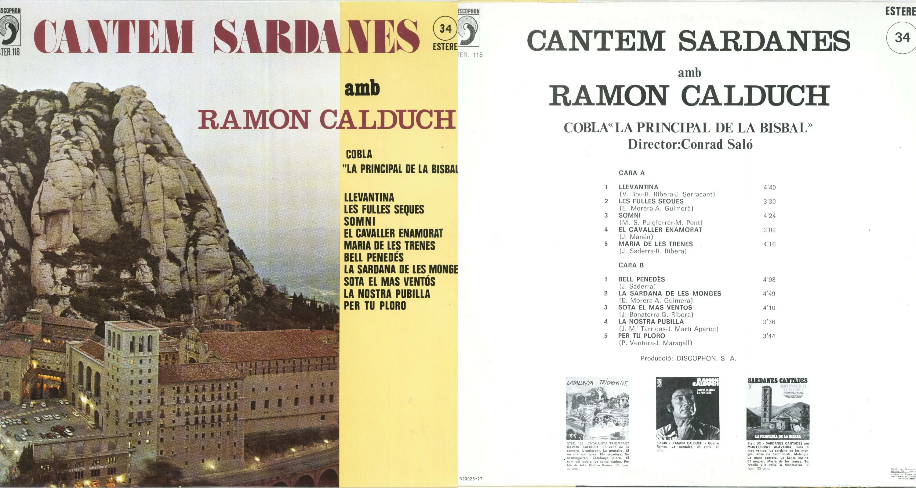 | Cantem sardanes amb Ramon Calduch | 34 | 01/01/1977 | DISCOPHON STER 118 | La Principal de la Bisbal | Sota el Mas Ventós | Bonaterra i Dabau, Jaume | La Principal de la Bisbal | 13 |