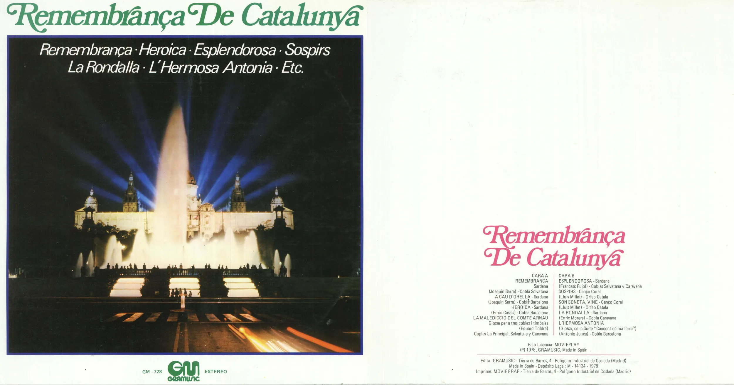 | Remembrança de Catalunya | 0 | 01/01/1978 | GRAMUSIC GM-728 | Selvatana, Barcelona, Caravana | Sospirs | Saderra i Puigferrer, Josep | . | 12 |