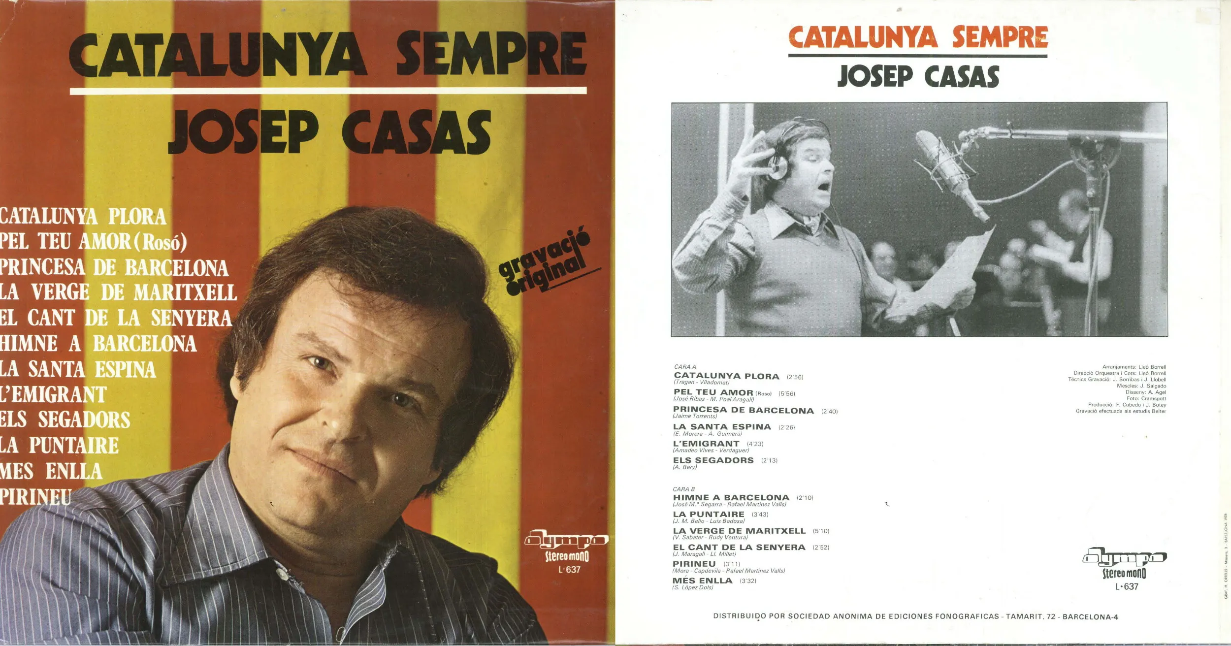 | Catalunya Sempre | 0 | 01/01/1978 | OLYMPO L-637 | Josep Casas i Orquestra | Princesa de Barcelona | Torrents i Gutiérrez de Pando, Jaume | Formació específica per l'activitat | 3 |