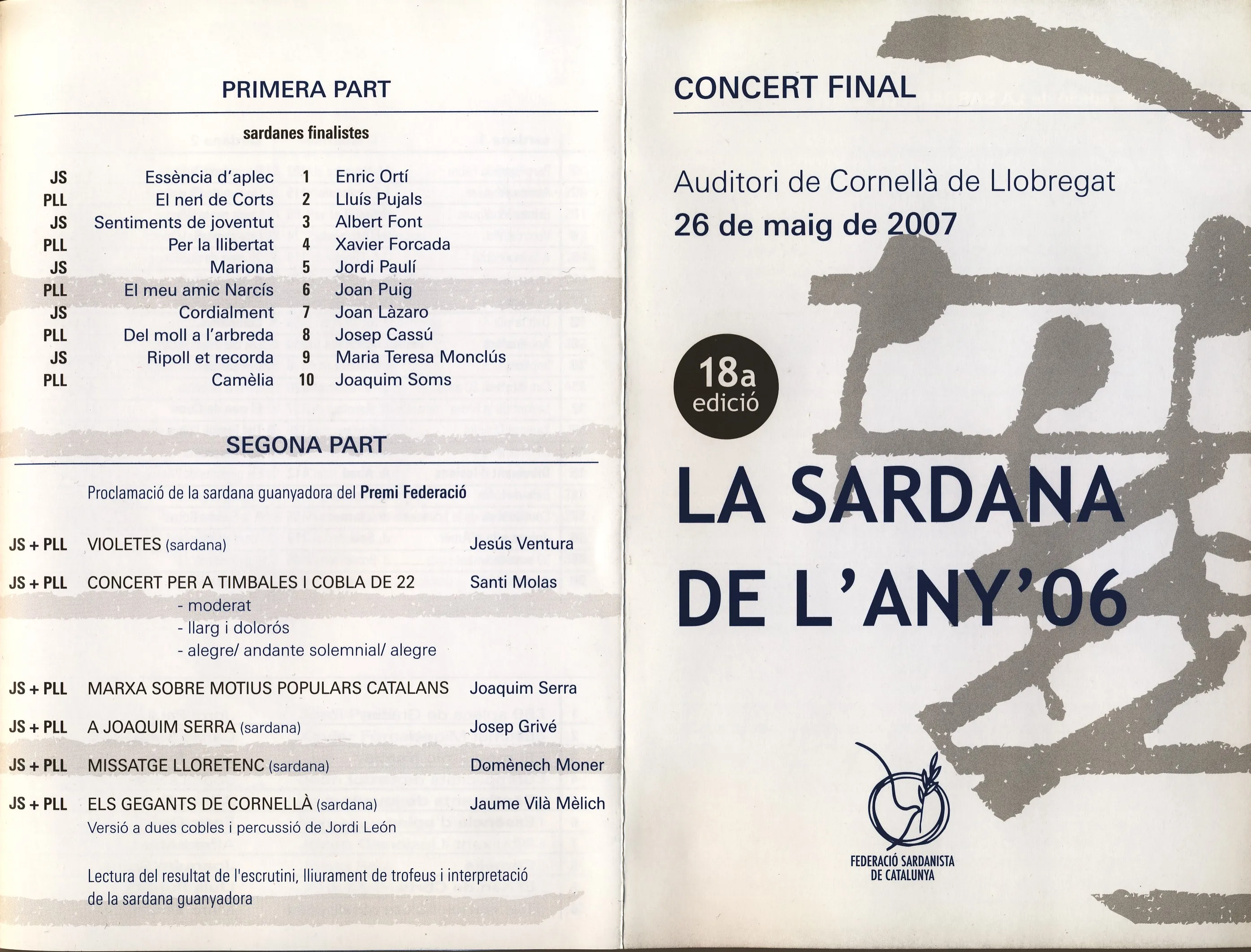 | Sardana de l'Any 2006 | 18 | 01/01/2007 | | Jovenívola i Pral. Llobregat | El meu amic Narcís | Puig i Fornis, Joan | La Principal del Llobregat | 6 |