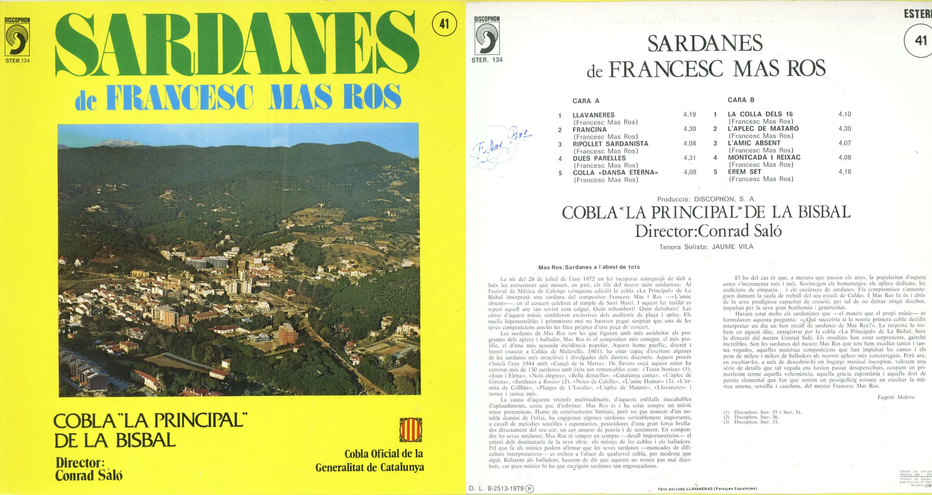 | Sardanes de Francesc Mas Ros | 41 | 01/01/1979 | DISCOPHON STER 134 (E-7.149) | La Principal de la Bisbal; Compositor: F. Mas Ros | Érem set | Mas i Ros, Francesc | La Principal de la Bisbal | 15 |